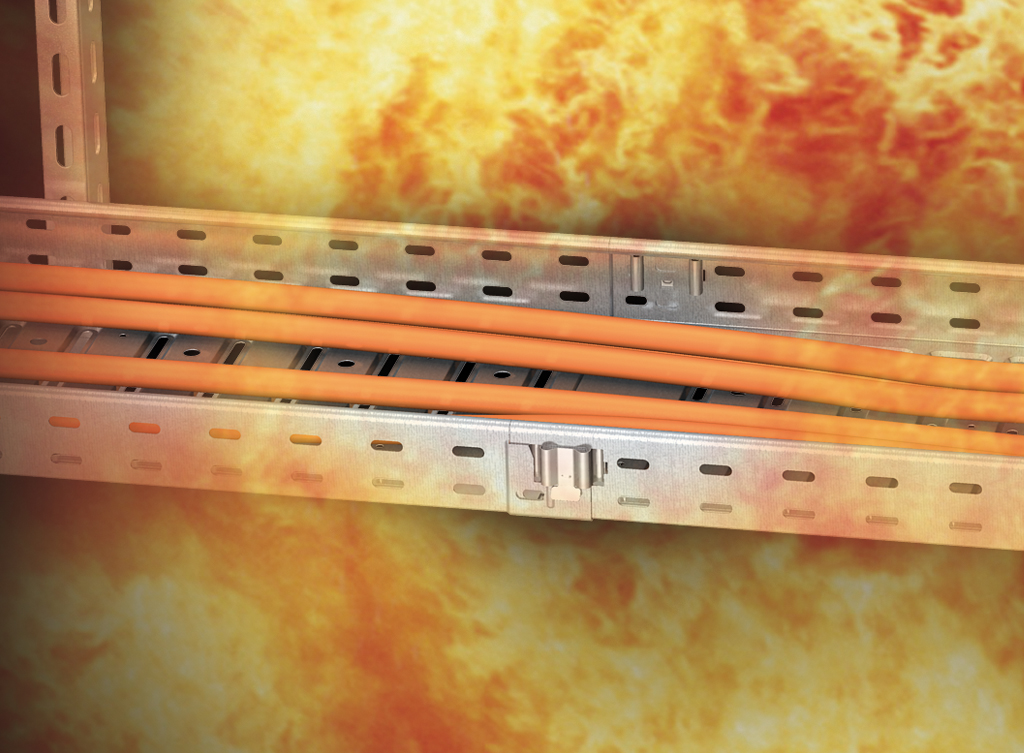 Os ensaios realizados de acordo com a DIN 4102 parte 12, comprovam que as eletrocalhas de encaixe da OBO Bettermann contribuem para que as funções vitais de um edifício continuem ativas, mesmo em casos de incêndio.